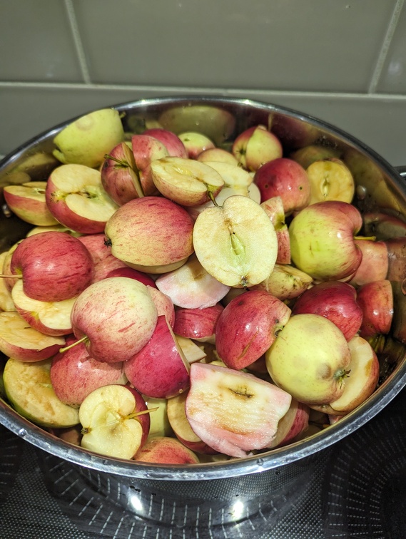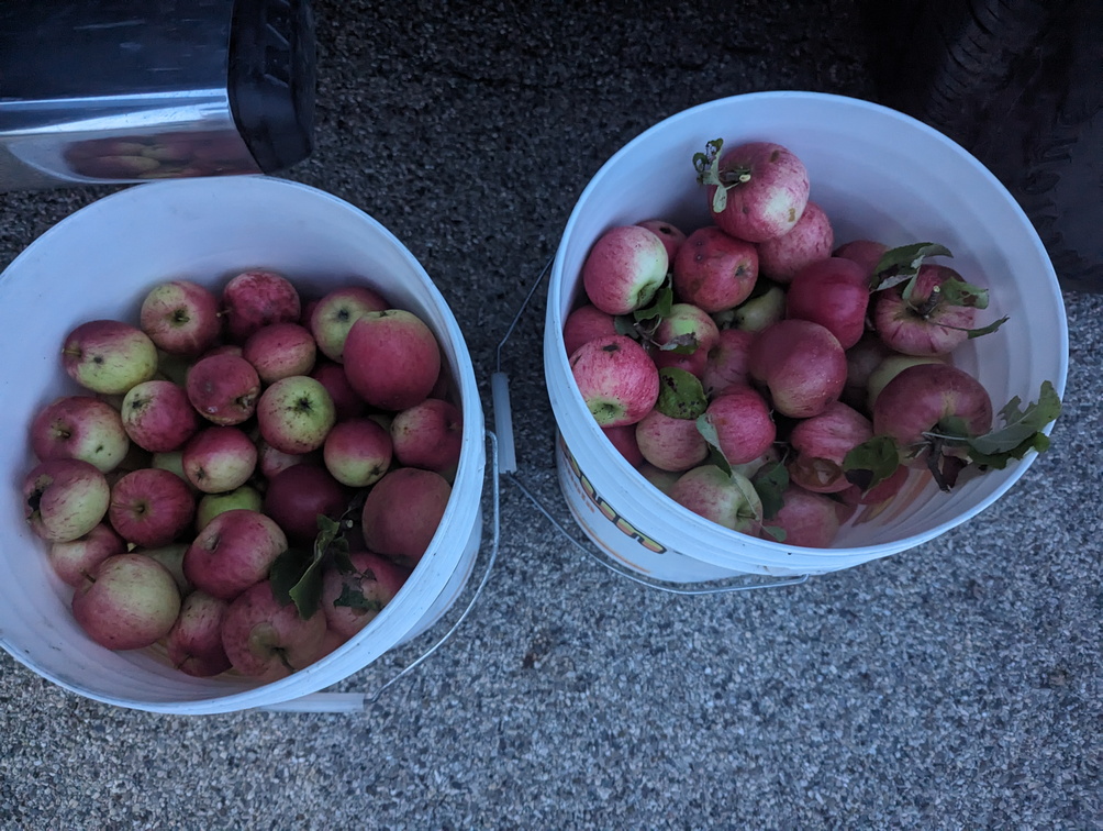 When we canned pears in August, one of the students had us stop on the side of the road while she picked some wild crabapples. Then I started noticing - there's crabapple trees absolutely everywhere on the side country roads. Like, hundreds of them. And the bushes where we hunt are full of them. All loaded with apples going unharvested. So i did some reading and found out that they're perfectly fine to eat and for making apple related products. I asked permission from a farmer, grabbed 2 five gallon pails of apples (the one tree tasted surprisingly like a macintosh apple) and made apple butter. In 2024 I'll be taking a bunch of students to harvest again, we'll be making apple butter and apple pies.