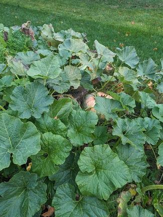 So in 2022 my spouse bought an ornamental pumpkin for the front step. After Halloween was over, I threw it into my raised bed garden to compost. Which, it did. But it also sprouted pumpkins in the spring. I thought I'd let it go and see what happened (not sure what I thought would happen, probably grow some pumpkins?). In any event, the pumpkin plant took off and consumed half my lawn. The neighbours would stop by and stare in amazement. My spouse was not pleased as it was all over the lawn.