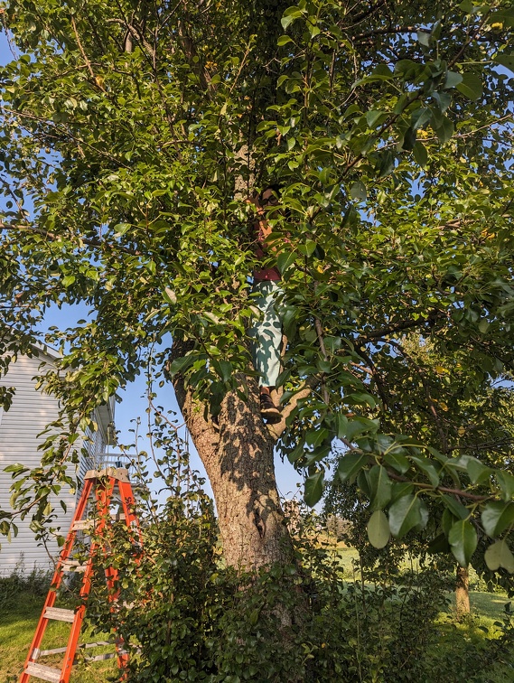 My buddy has two huge old pear trees just laden with pears every year. Nobody touches them, they just fall on the ground and he runs over them with the lawn mower. This year we took some ladders, a few students, picked buckets full and made canned pears. Round about February they taste like sunshine, if they last that long. I had to drag the students away from all the farm cats, and feeding the horses some pears made the horses happy.